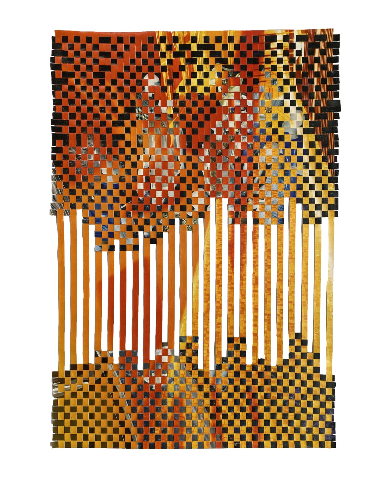 Marcellina Akpojotor’s richly textured fabric collages weave narratives of